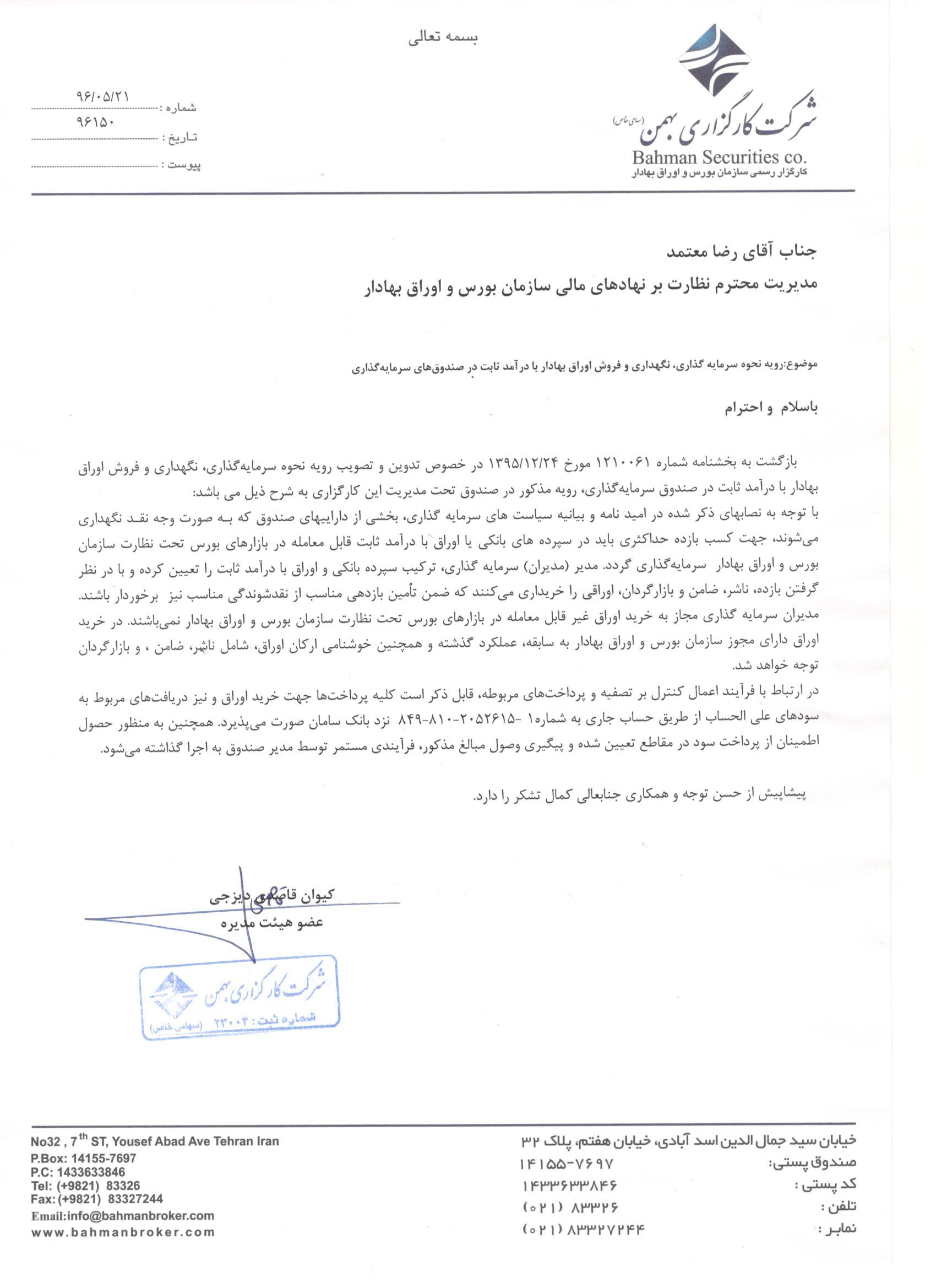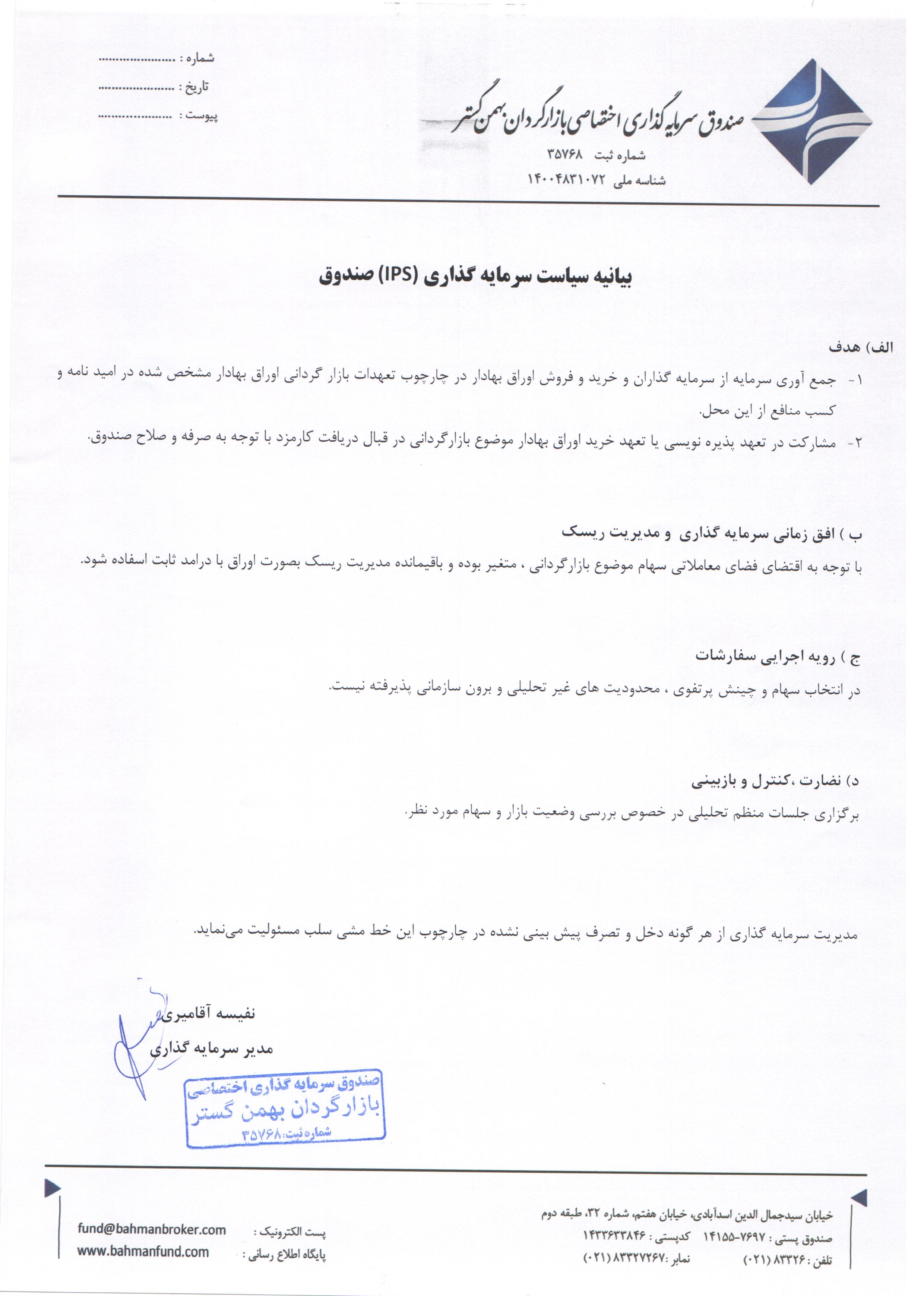| 145 | بیانیه سیاست سرمایه گذاری صندوق | ۱۳۹۵/۰۵/۱۲ |